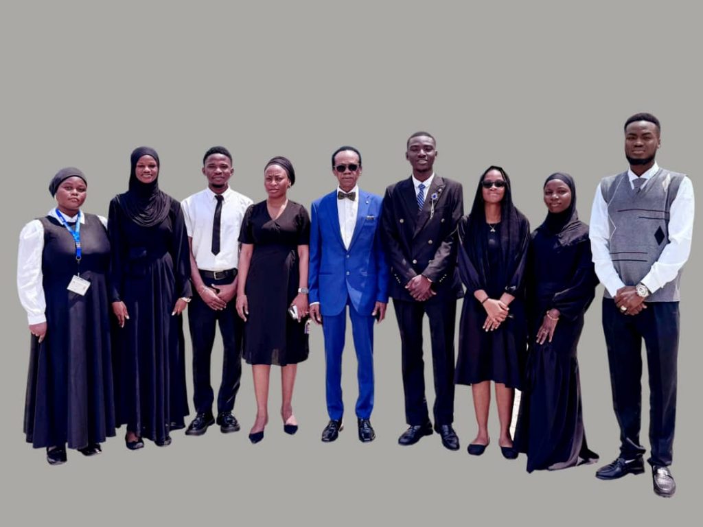 Law Students Association of Nigeria (LAWSAN), Bola Ajibola College of Law 2025/2026 Executive Committee with the Dean of Law. From left: Usman Samira, Vice President; Lawal Moshkuroh, Assistant General Secretary; Bello Jesutofunmi, Social Director; Mrs. Alabi Shukurah, LAWSAN Staff Adviser; Prof. Momodu Kassim-Momodu, Dean of Law; Adeyemi Justus, LAWSAN President, Tony Victory, Member, Editorial Board; Alaran Aliyah, General Secretary; Maruwf Isiak, Treasurer.